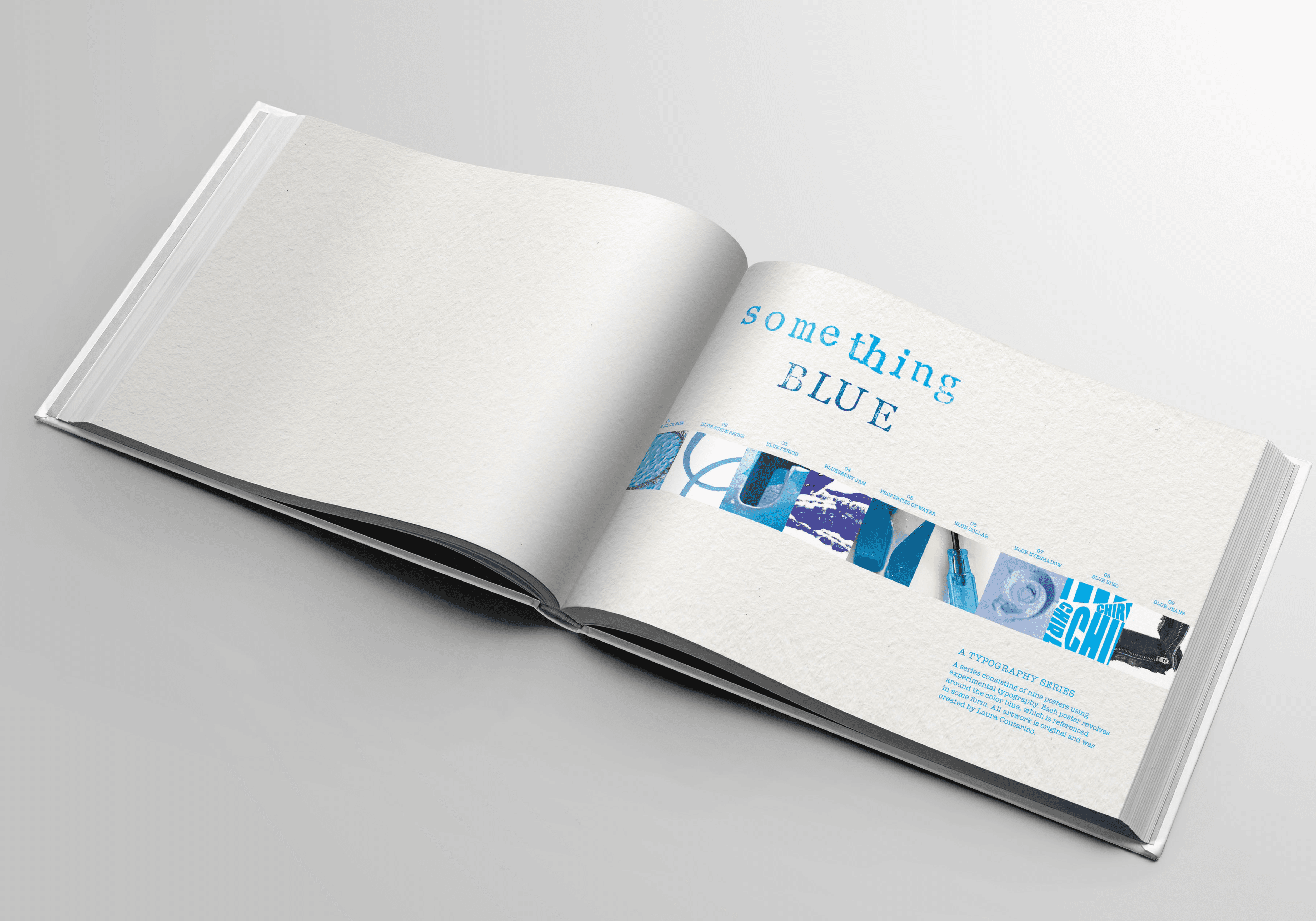 Design a nine-poster typographic series constrained by one variable: blue. Explore experimental form, materiality, and composition while producing entirely original imagery.